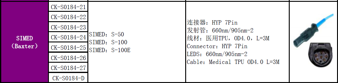 This is Simed Baxter 7 Pin Reusable SpO2 Sensor Neonate Silicone Y Type,3M Long, No Need Adapter Cable